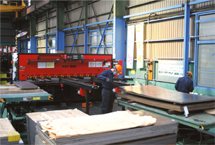 Gia công cắt thép tấm là dùng lưỡi dao song song cắt thép theo một đường thẳng.