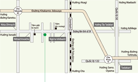 | Bằng Ô tô | ■Hướng đường Kitakanto Jidousya từ trạm thu phí Ota Kiryu mất khoảng 15 phút từ trạm thu phí Ota Yabuzuka mất khoảng 10 phút ■Đi tàu điện tuyến Tobu xuống ga Yabuzuka rồi đi Ô tô khoảng 6 phút |